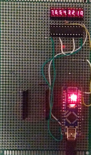 The MAX7219 display driver arrived this week and without further I did the needed connections according to data sheet, sort of, it worked first time with only two switched segments, promptly corrected.